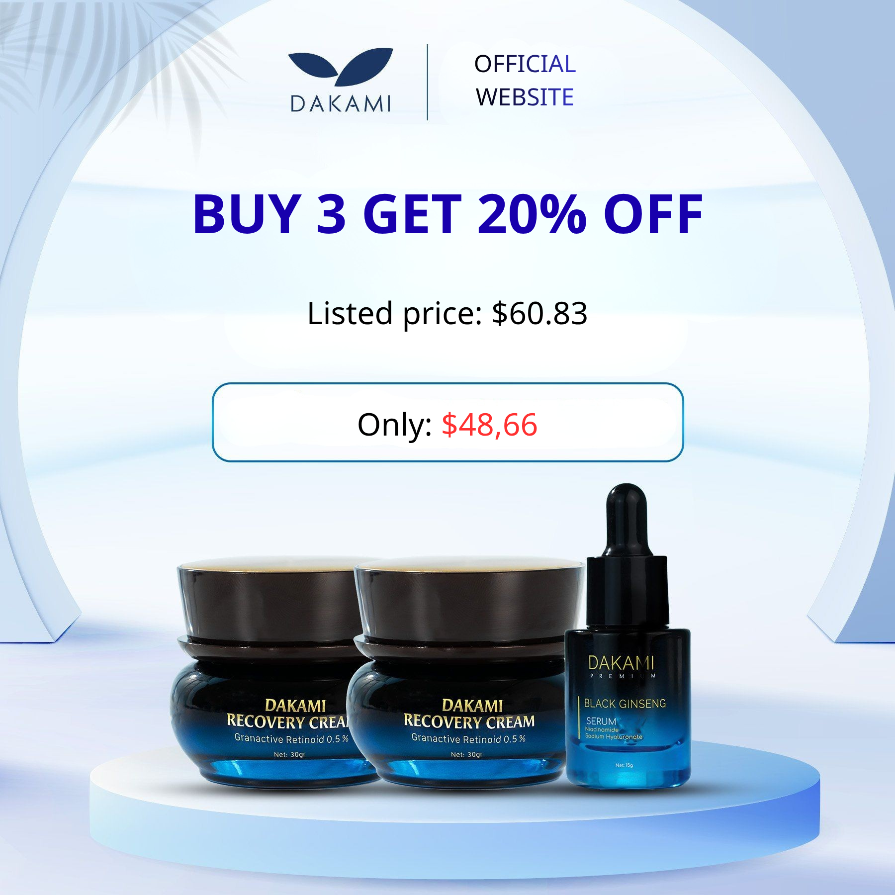 1. Dakami Black Ginseng moisturizing cream: Helps reduce wrinkles, anti-aging. Helps even skin tone, fade dark spots, melasma.